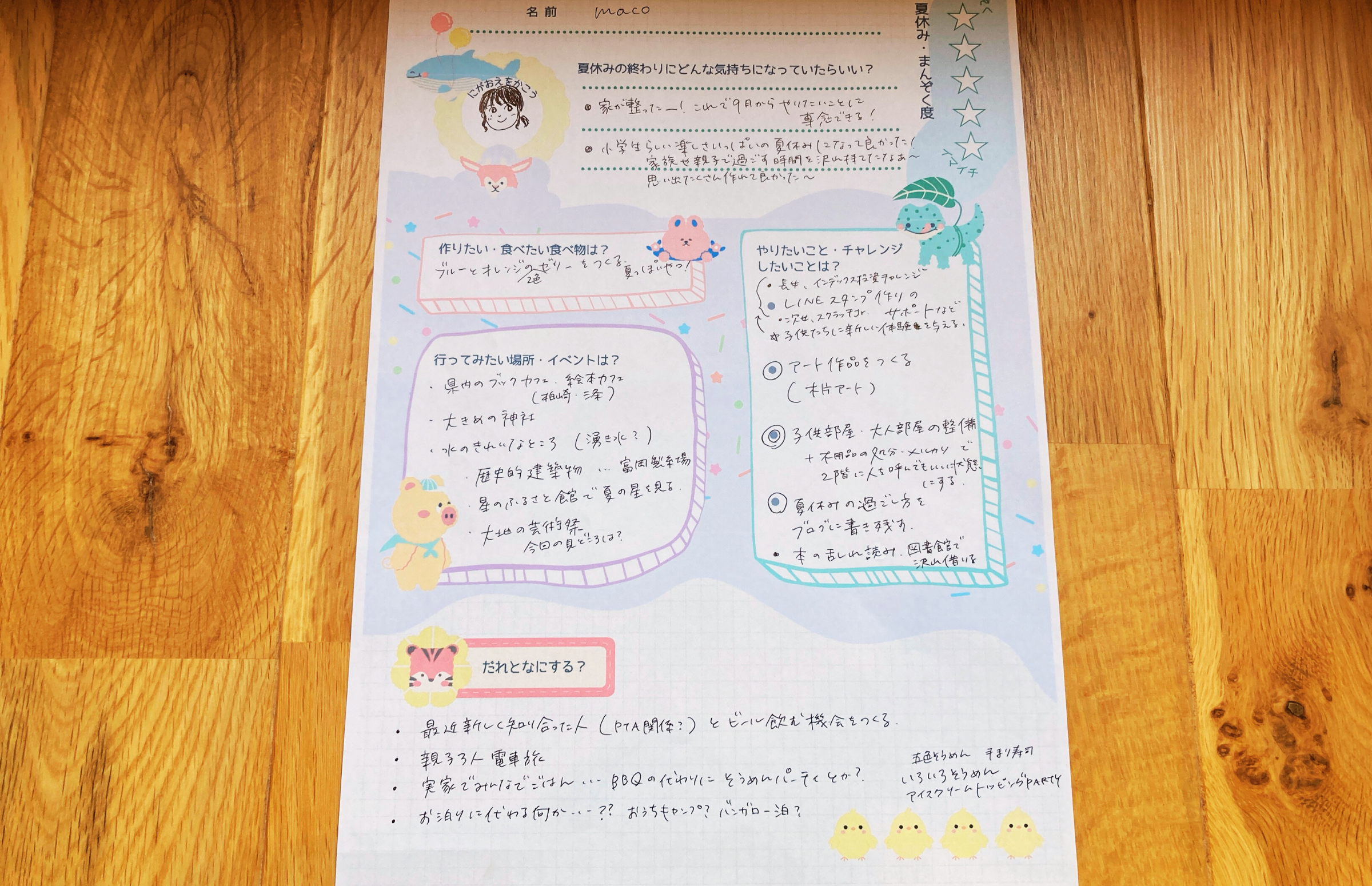 夏休みが始まる前に子ども達が「夏休みにやりたいことリスト」を書いた、という前回の記事の続きです。