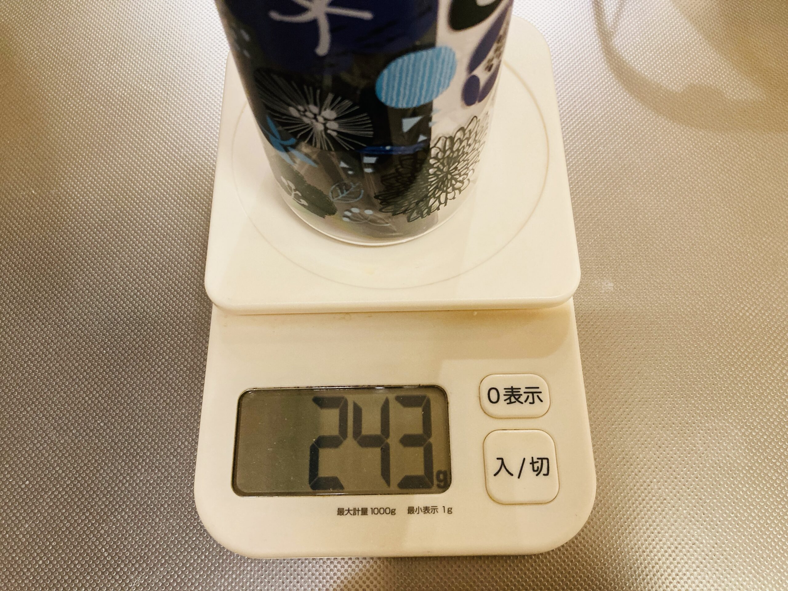 試しに重さを測ってみたところ、243gでした。