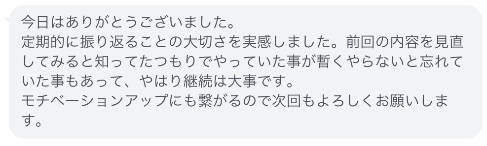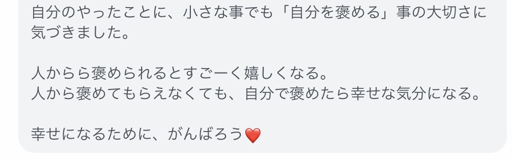 で、できているということを、振り返りを通して感じていただけたら嬉しいです。